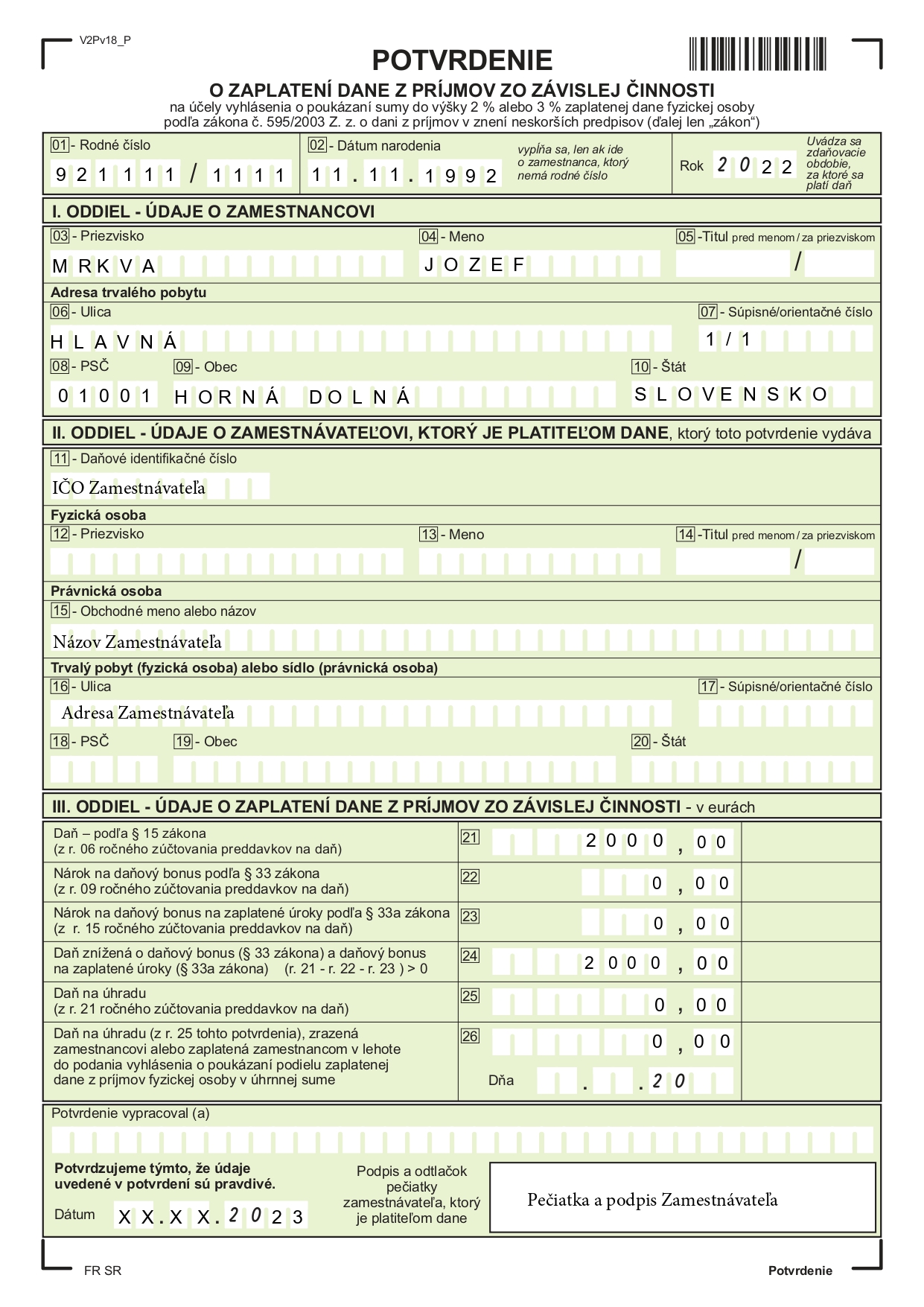 - Nakoniec doplňte dátum a podpíšte. Vyhlásenie a potvrdenie odneste alebo pošlite na daňový úrad.